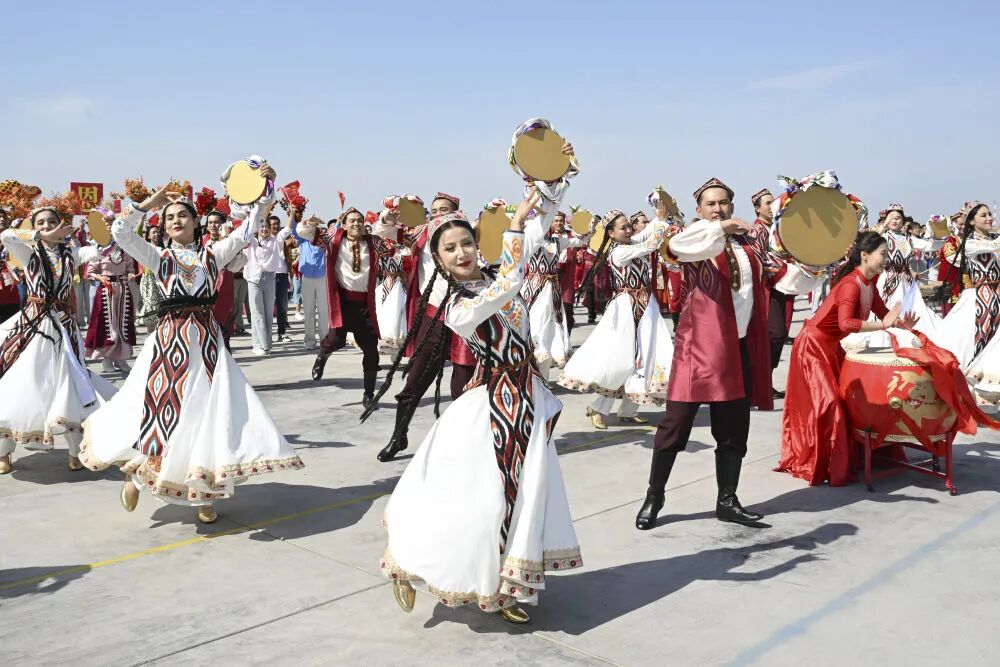 2025年9月23日下午,群众载歌载舞,喜迎新疆维吾尔自治区成立70周年。新华社记者 谢环驰 摄