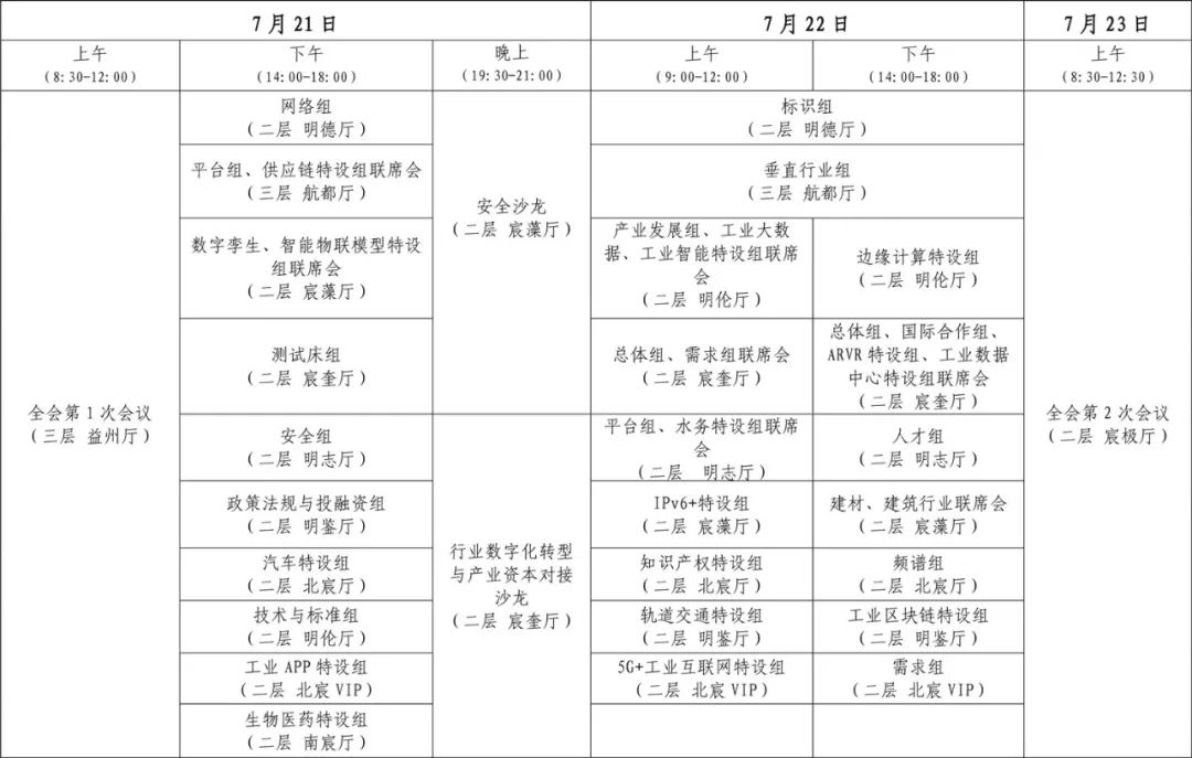 技术与标准组 | 1. 国家工业互联网综合标准化体系建设指南宣贯及研讨 2.2021年本年度第二批立项征集的联盟标准立项建议书研讨,给出是否立项结果。 | 二层 明伦厅 |